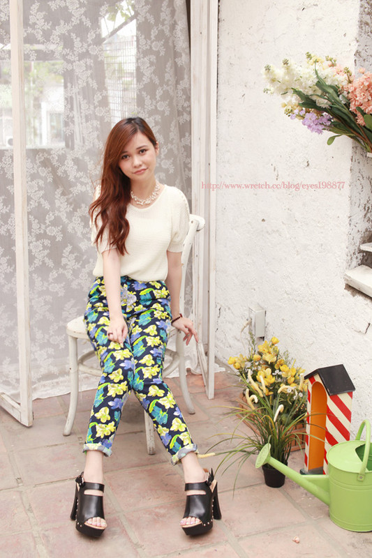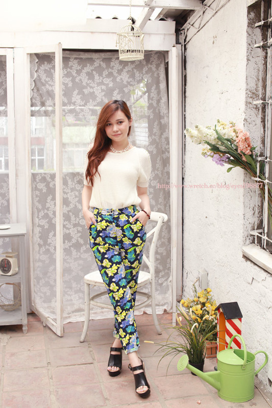 搭配從未見過的螢光大花朵哈倫褲,比起窄褲還要多了份時尚感呢!