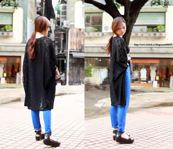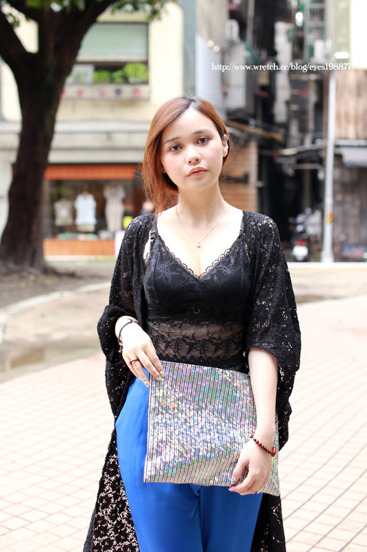 在陽光下拍依然不減它的閃耀,蕾絲罩衫想穿性感的話,就選擇黑色,